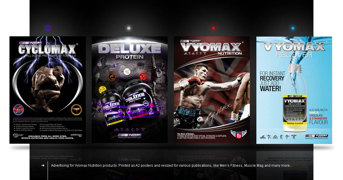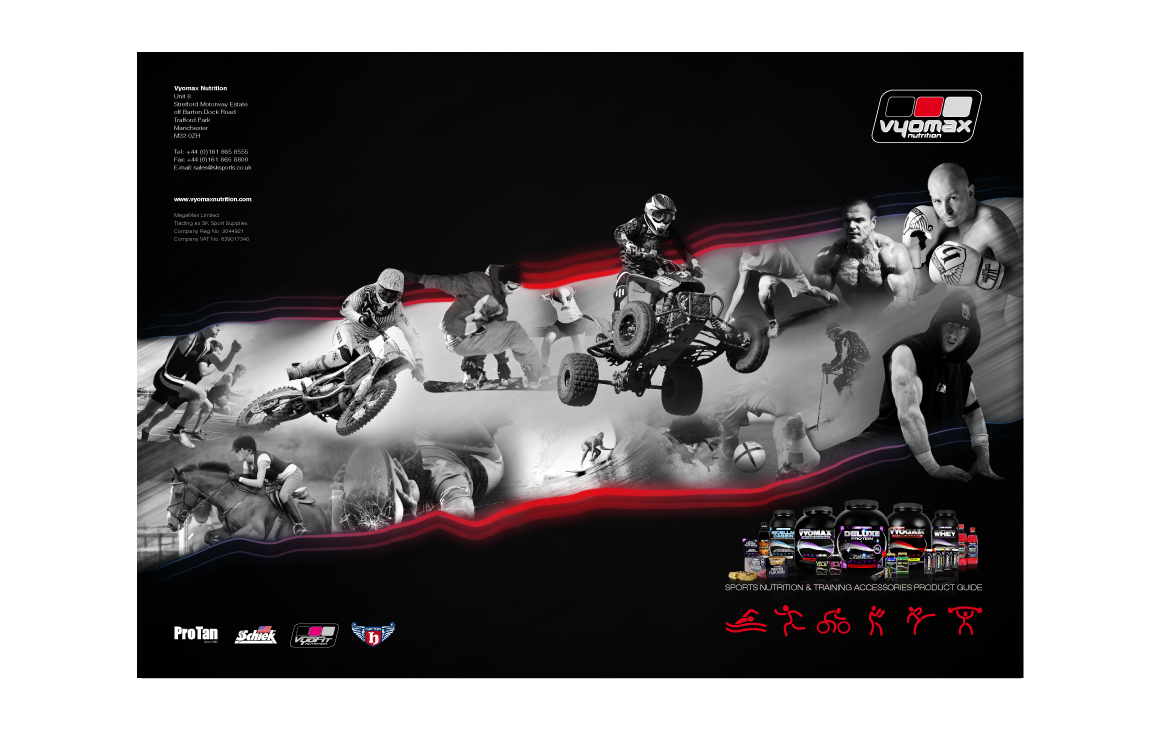 We have a long established relationship with Vyomax Nutrition, which started by re-branding their entire range of sports nutrition products and training accessories. Below are some examples of the work produced for them. We were also instrumental in the