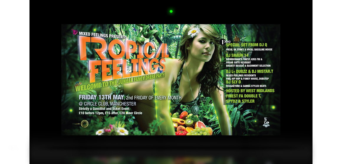 This exclusive Manchester nightclub required flyers to be designed for their Friday night events, run by promotional company Mixed Feelings. These designs had to be produced within short periods of time, on a very specific budget. This allowed maximum exposure via social media networks and advertising, always ensuring long queues to their doors.