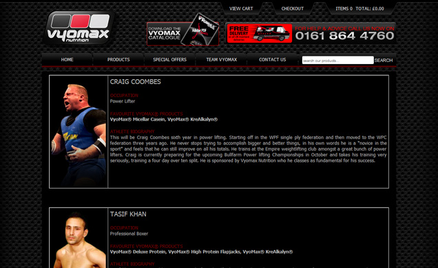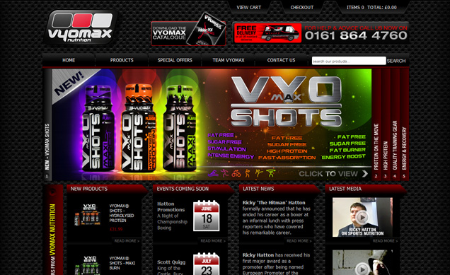 We have a long established relationship with Vyomax Nutrition, which started by re-branding their entire range of sports nutrition products and training accessories. Below are some examples of the work produced for them. We were also instrumental in the